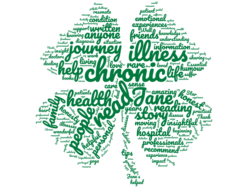 A must read for absolutely anyone! Well written in plain English, a personal and honest account that as a reader I felt privileged to have been allowed to share. This book is ‘unputdownable’ .Jane’s personal journey is so familiar to me, not as a person with a chronic illness, but as someone who lives with one from the side lines and I’m so grateful she has had the courage to share her story to support others too.